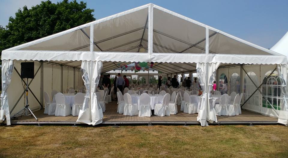 Das VIP-Zelt in 10m Grundbreite läßt sich in 3m - Schritten verlängern, wobei die kleinste zu bauende Größe