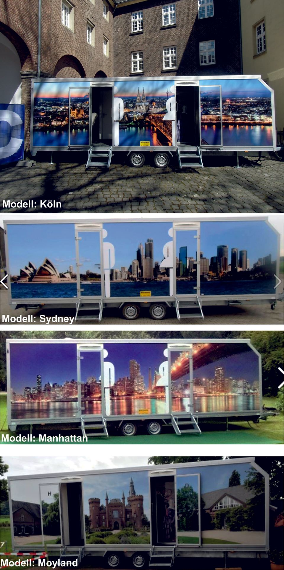 Unsere Wagen sind ausgestattet mit moderne LED Lichttechnik, Radio, Heizung, freihängender Keramik und