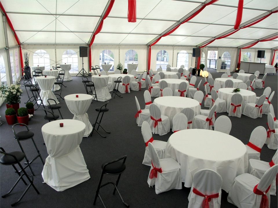 Das VIP-Zelt in 20m Grundbreite läßt sich in 5m - Schritten verlängern, wobei die kleinste zu bauende Größe